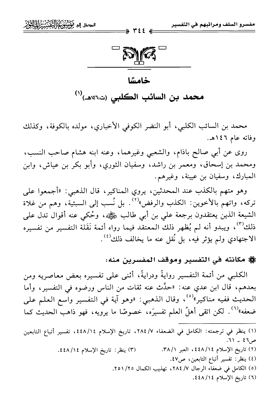 خامسًا محمد بن السائب الكلبي (ت: ١٤٦ هـ) (¬١)