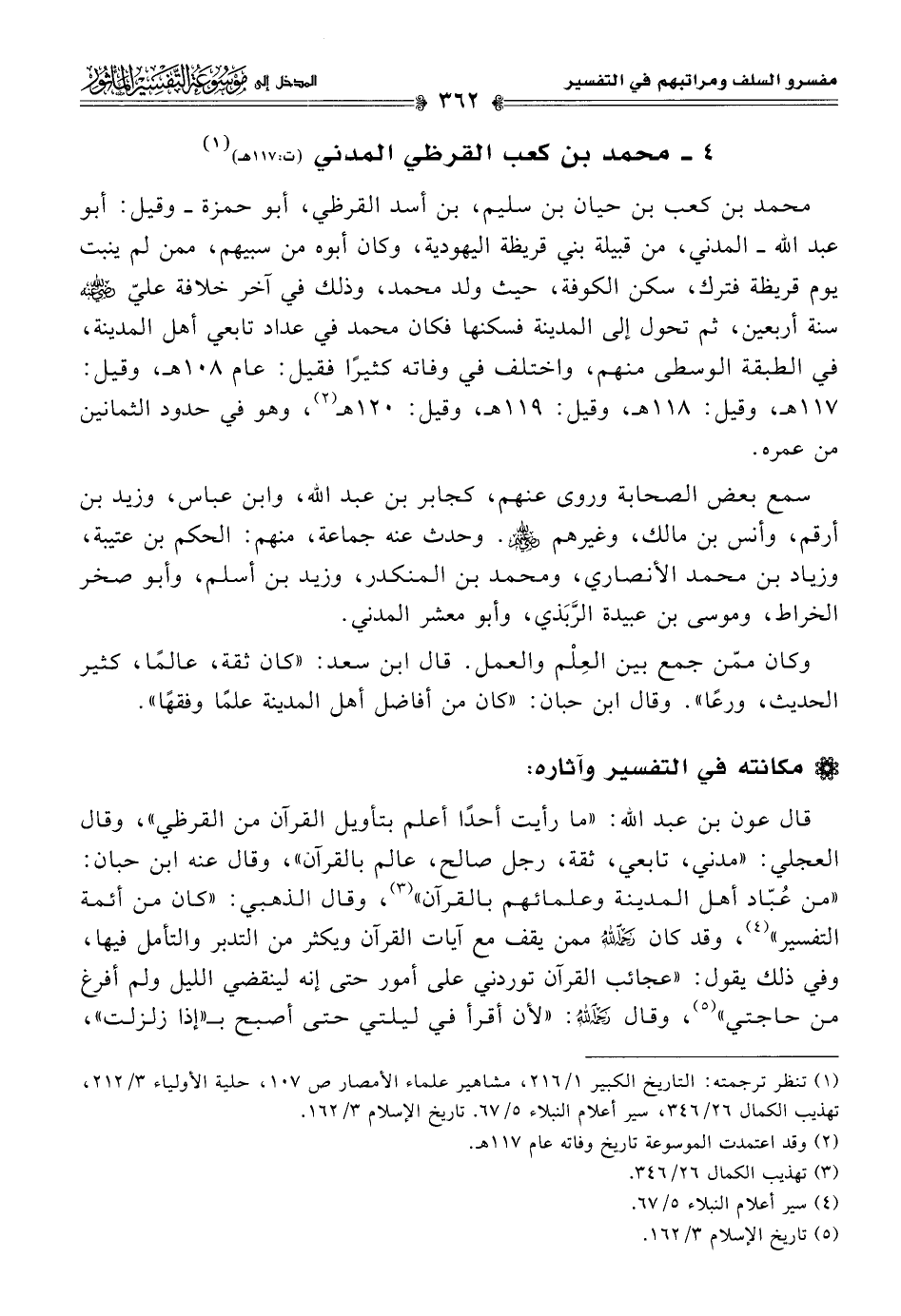 ٤ - محمد بن كعب القرظي المدني (ت: ١١٧ هـ) (¬١)