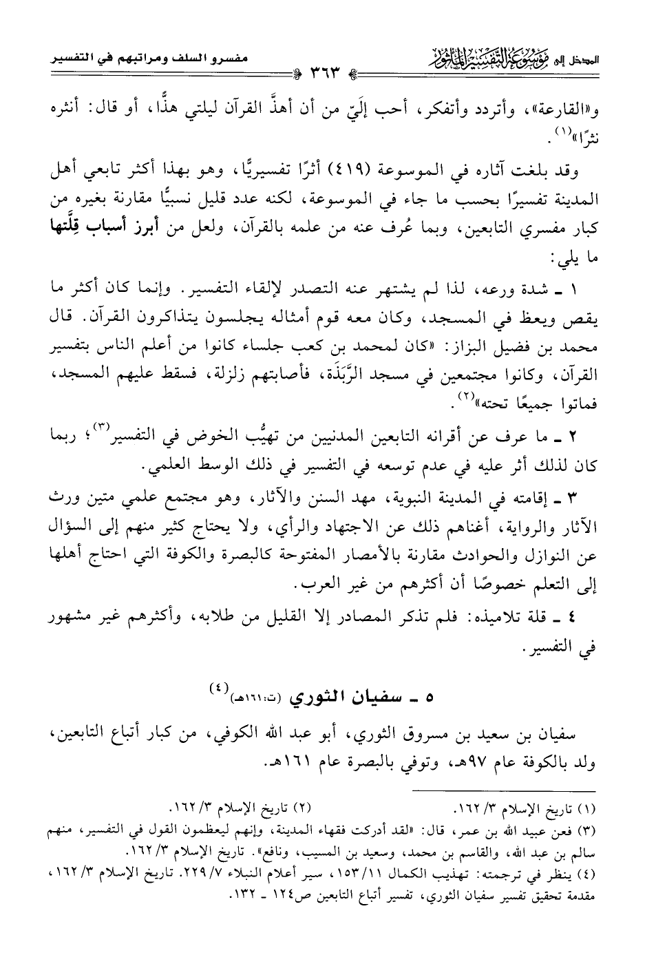 (¬٣) فعن عبيد اللَّه بن عمر، قال: "لقد أدركت فقهاء المدينة، وإنهم ليعظمون القول في التفسير، منهم سالم بن عبد اللَّه، والقاسم بن محمد، وسعيد بن المسيب، ونافع". تاريخ الإسلام ٣/ ١٦٢.
