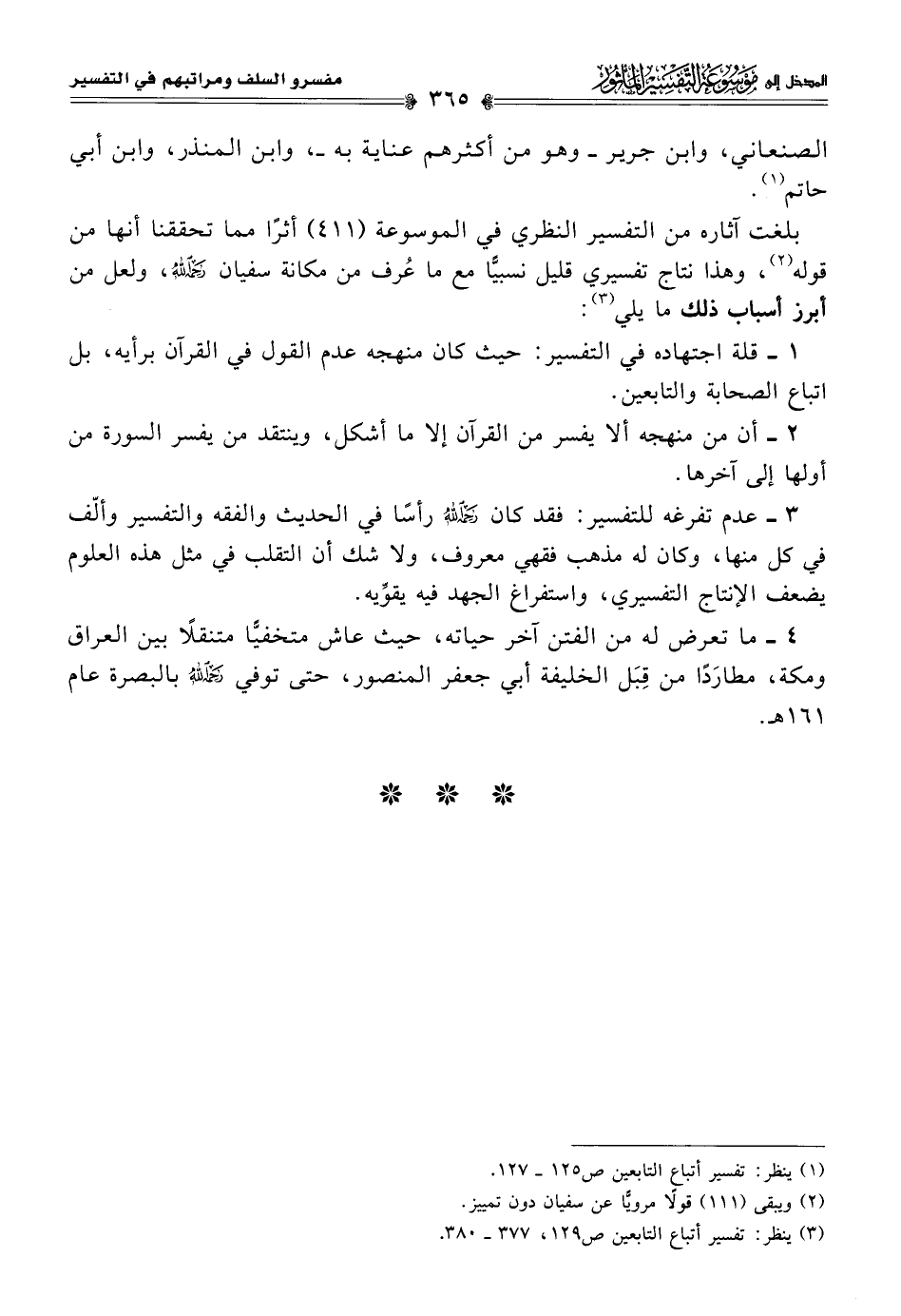 (¬٣) ينظر: تفسير أتباع التابعين ص ١٢٩، ٣٧٧ - ٣٨٠.