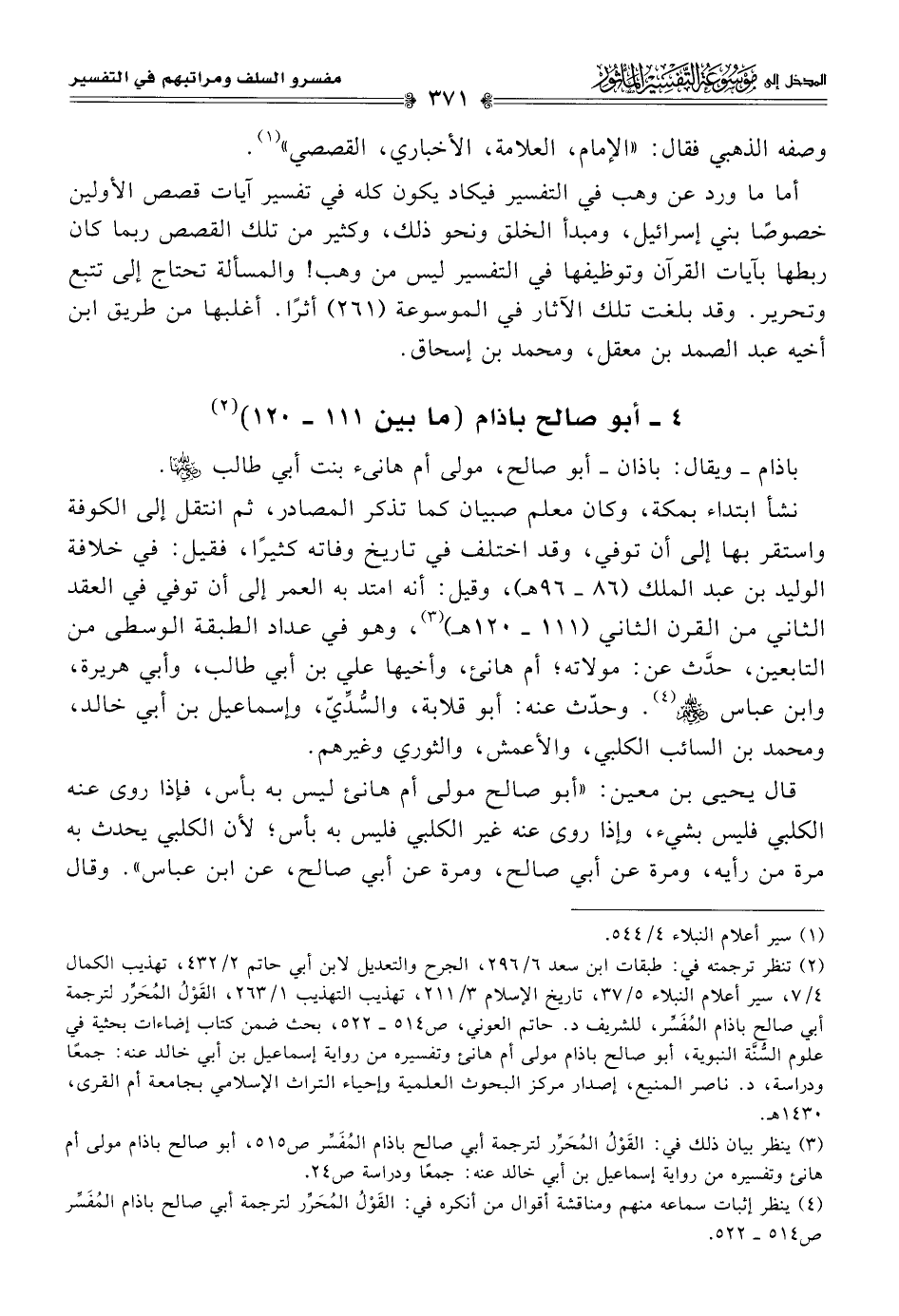 (¬٣) ينظر بيان ذلك في: القَوْلُ المُحَرِّر لترجمة أبي صالح باذام المُفَسِّر ص ٥١٥، أبو صالح باذام مولى أم هانئ وتفسيره من رواية إسماعيل بن أبي خالد عنه: جمعًا ودراسة ص ٢٤.