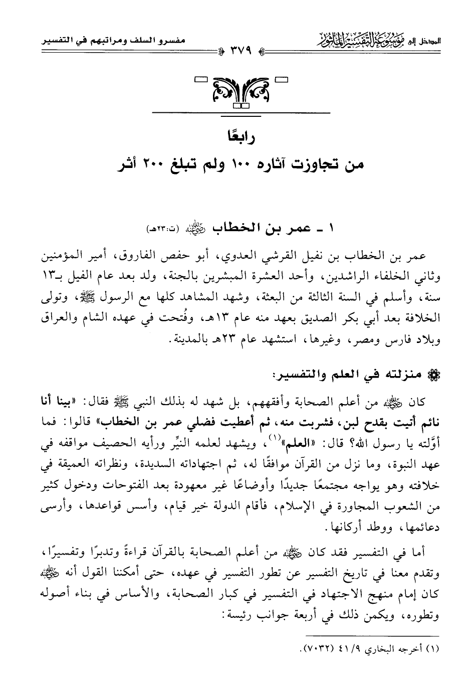١ - عمر بن الخطاب -رضي اللَّه عنه- (ت: ٢٣ هـ)