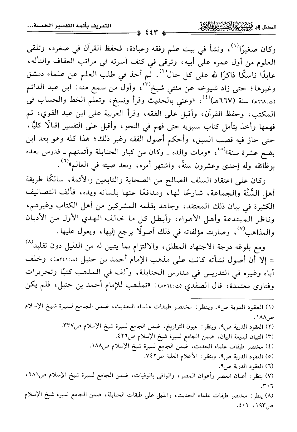 (¬٨) ينظر: مختصر طبقات علماء الحديث، والذيل على طبقات الحنابلة، ضمن الجامع لسيرة شيخ الإسلام ص ١٩٣، ٤٠٢.