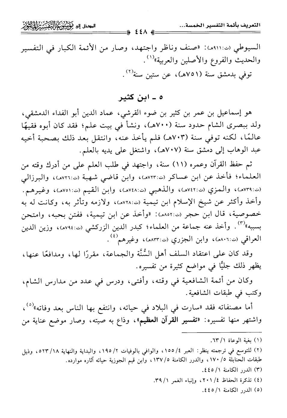 (¬٥) الدرر الكامنة ١/ ٤٤٥.