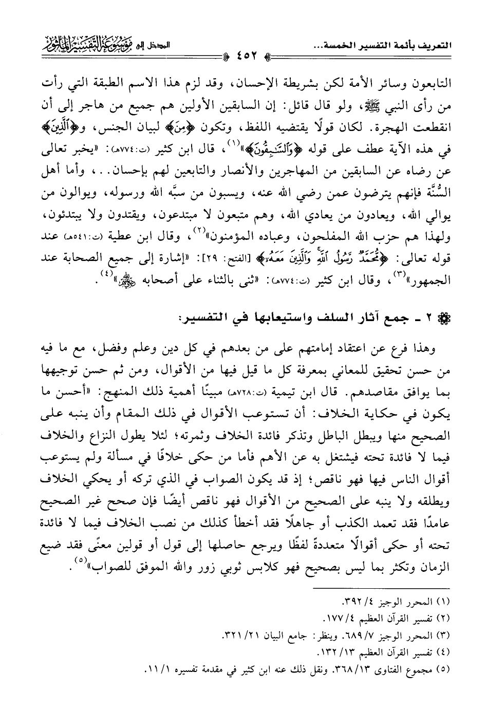 (¬٥) مجموع الفتاوى ١٣/ ٣٦٨. ونقل ذلك عنه ابن كثير في مقدمة تفسيره ١/ ١١.