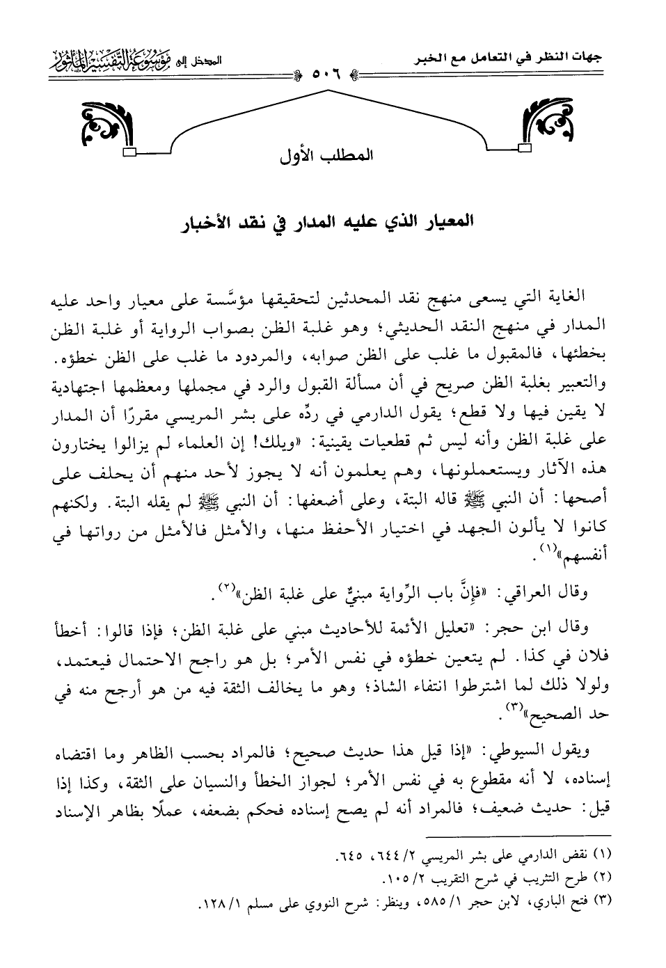 المطلب الأول المعيار الذي عليه المدار في نقد الأخبار