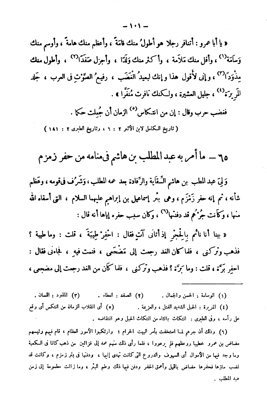 65- ما أمر به عبد المطلب بن هاشم في منامه من حفر زمزم: