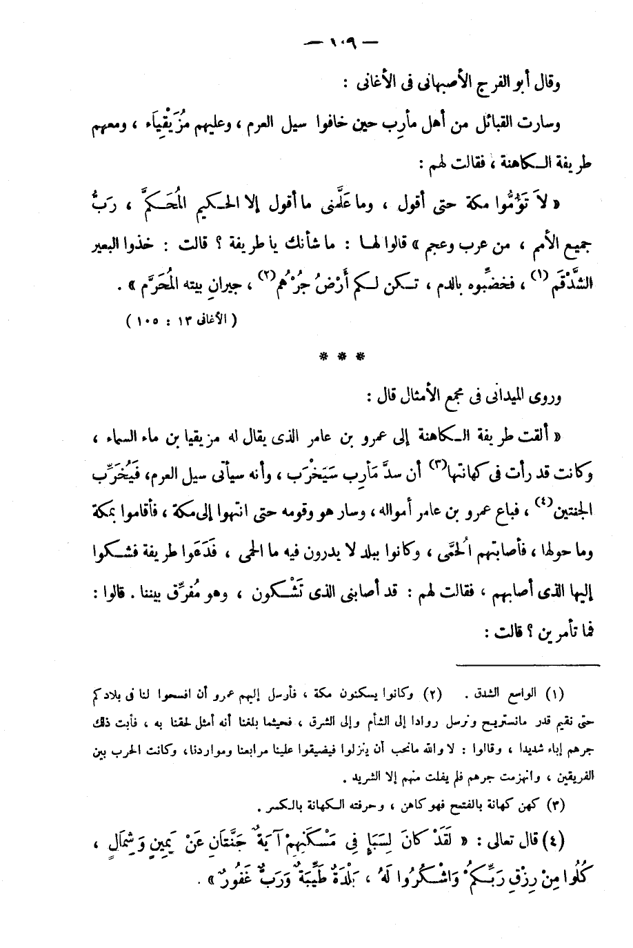 "لا تؤموا مكة حتى أقول، وما علمني ما أقول إلا الحكيم المحكم، رب جميع الأمم، من عرب وعجم" قالوا لها: ما شأنك يا طريفة؟ قالت: خذوا البعير الشدقم1، فخضبوه بالدم، تكن لكم أرض جرهم2، جيران بيته المحرم".