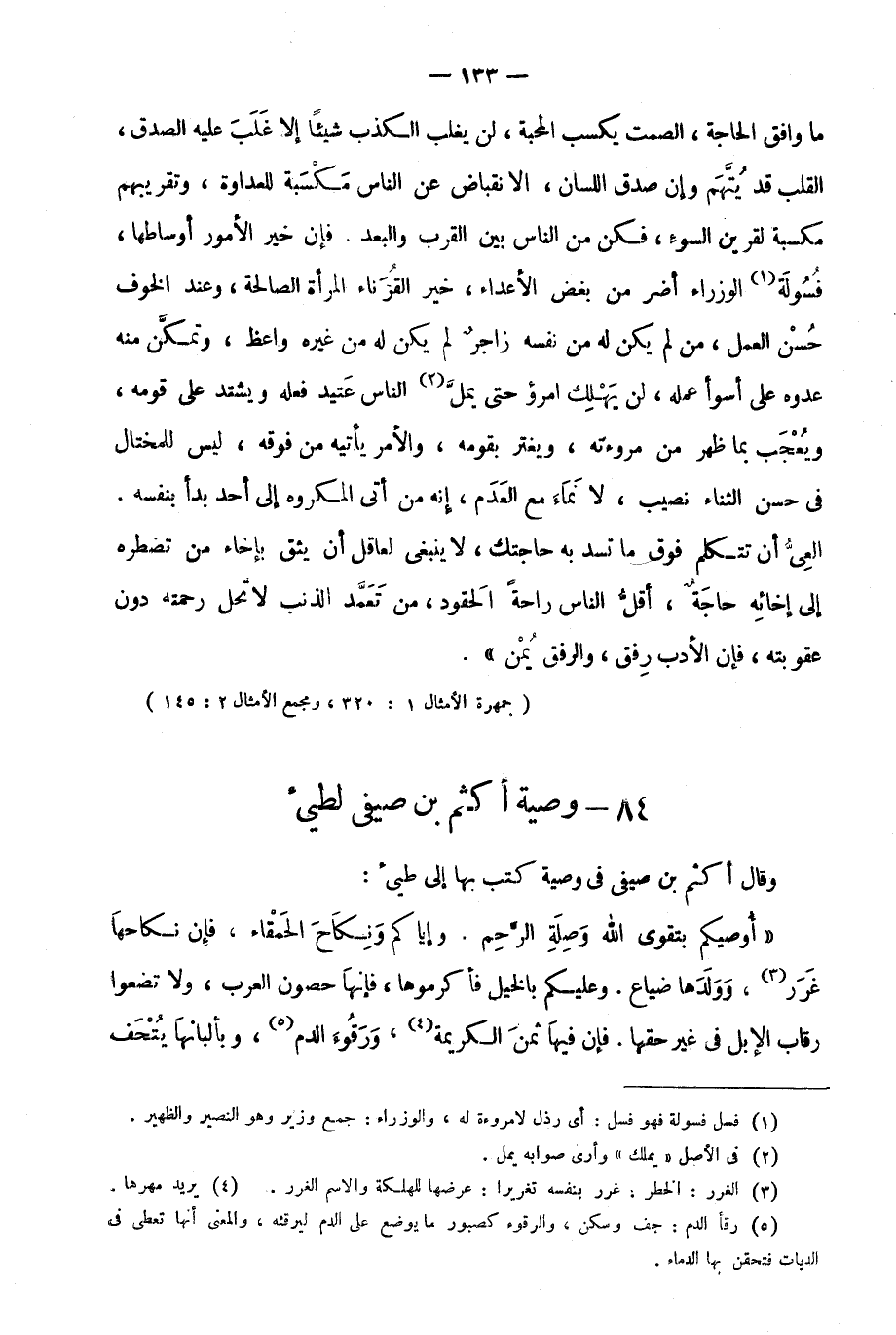 84- وصية أكثم بن صيفي لطيئ: