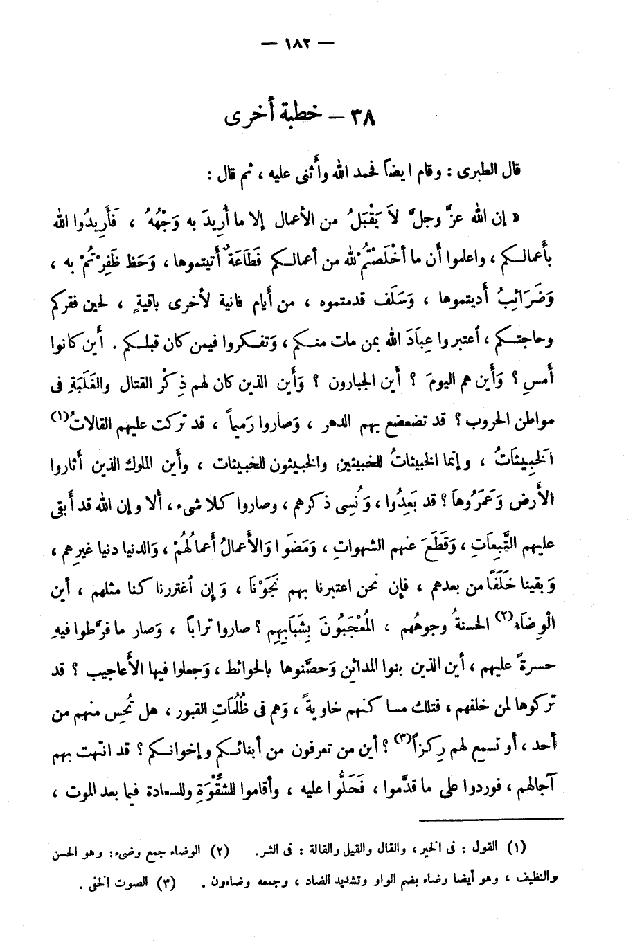 قال الطبري: وقام أيضًا فحمد الله وأثنى عليه، ثم قال: