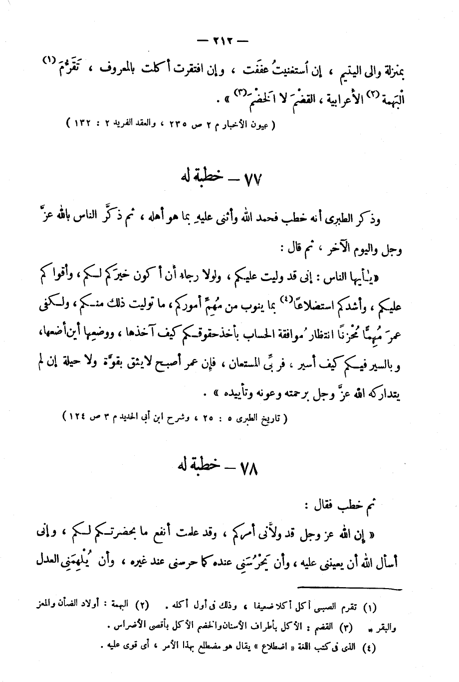 "تاريخ الطبري 5: 25، وشرح ابن أبي الحديد م 3 ص124".