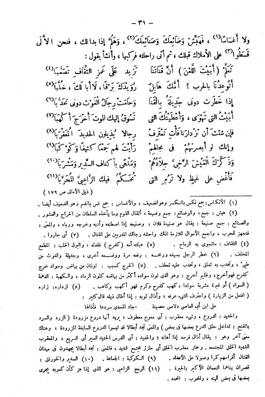 2 هبش: جمع، والوضائع: جمع وضعية، أثقال القوم وما يأخذه السلطان من الخراج والعشور. والصنائع: جمع صنيعة: يقال هو صنيعة فلان، وصنيعه إذا اصطنعه وأدبه وخرجه ورباه، والمعنى: فتجهز للحرب، وأجمع الأموال اللازمة لذلك واحشد رجالك المدربين على القتنال.