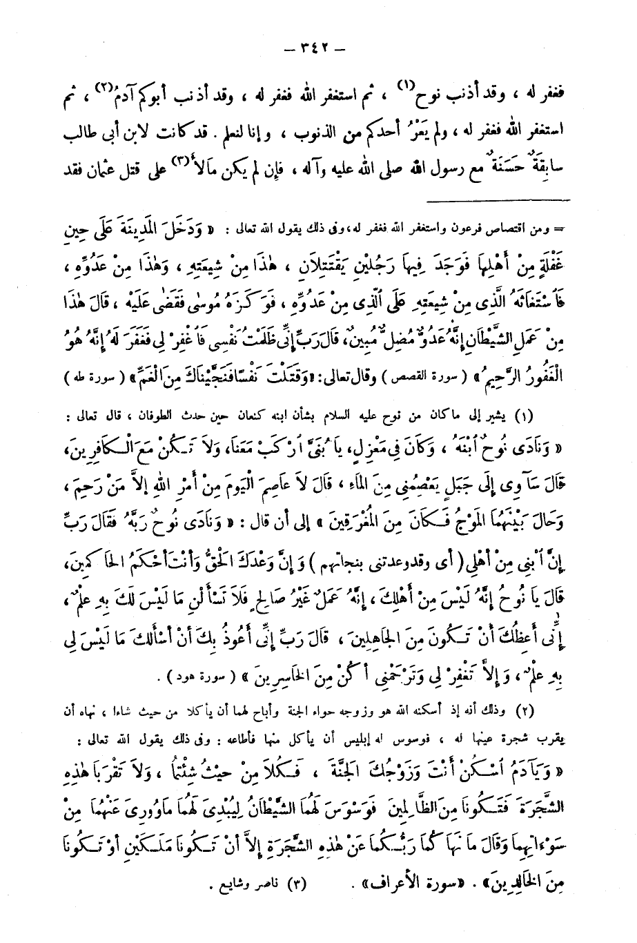 1 يشير إلى ما كان من نوح عليه السلام بشأن ابنه كنعان حين حدث الطوفان، قال تعالى: {وَنَادَى نُوحٌ ابْنَهُ وَكَانَ فِي مَعْزِلٍ يَا بُنَيَّ ارْكَبْ مَعَنَا وَلا تَكُنْ مَعَ الْكَافِرِينَ، قَالَ سَآوي إِلَى جَبَلٍ يَعْصِمُنِي مِنَ الْمَاءِ قَالَ لا عَاصِمَ الْيَوْمَ مِنْ أَمْرِ اللَّهِ إِلَّا مَنْ رَحِمَ وَحَالَ بَيْنَهُمَا الْمَوْجُ فَكَانَ مِنَ الْمُغْرَقِينَ} إلى أن قال: {وَنَادَى نُوحٌ رَبَّهُ فَقَالَ رَبِّ إِنَّ ابْنِي مِنْ أَهْلِي} "أي وقد وعدتني بنجاتهم" {وَإِنَّ وَعْدَكَ الْحَقُّ وَأَنْتَ أَحْكَمُ الْحَاكِمِينَ، قَالَ يَا نُوحُ إِنَّهُ لَيْسَ مِنْ أَهْلِكَ إِنَّهُ عَمَلٌ غَيْرُ صَالِحٍ فَلا تَسْأَلْنِ مَا لَيْسَ لَكَ بِهِ عِلْمٌ إِنِّي أَعِظُكَ أَنْ تَكُونَ مِنَ الْجَاهِلِينَ، قَالَ رَبِّ إِنِّي أَعُوذُ بِكَ أَنْ أَسْأَلَكَ مَا لَيْسَ لِي بِهِ عِلْمٌ وَإِلَّا تَغْفِرْ لِي وَتَرْحَمْنِي أَكُنْ مِنَ الْخَاسِرِينَ} [سورة هود] .