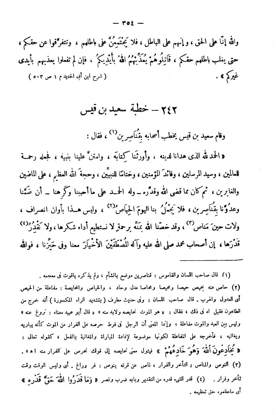 وقام سعيد بن قيس يخطب أصحابه بقناصرين1، فقال:
