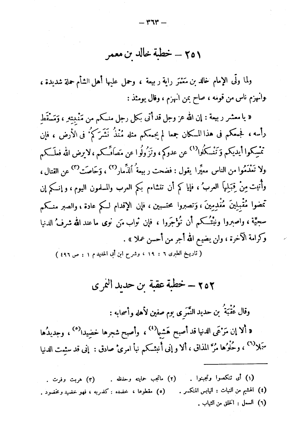 "تاريخ الطبري 6: 19، وشرح ابن أبي الحديد م 1: ص 496".