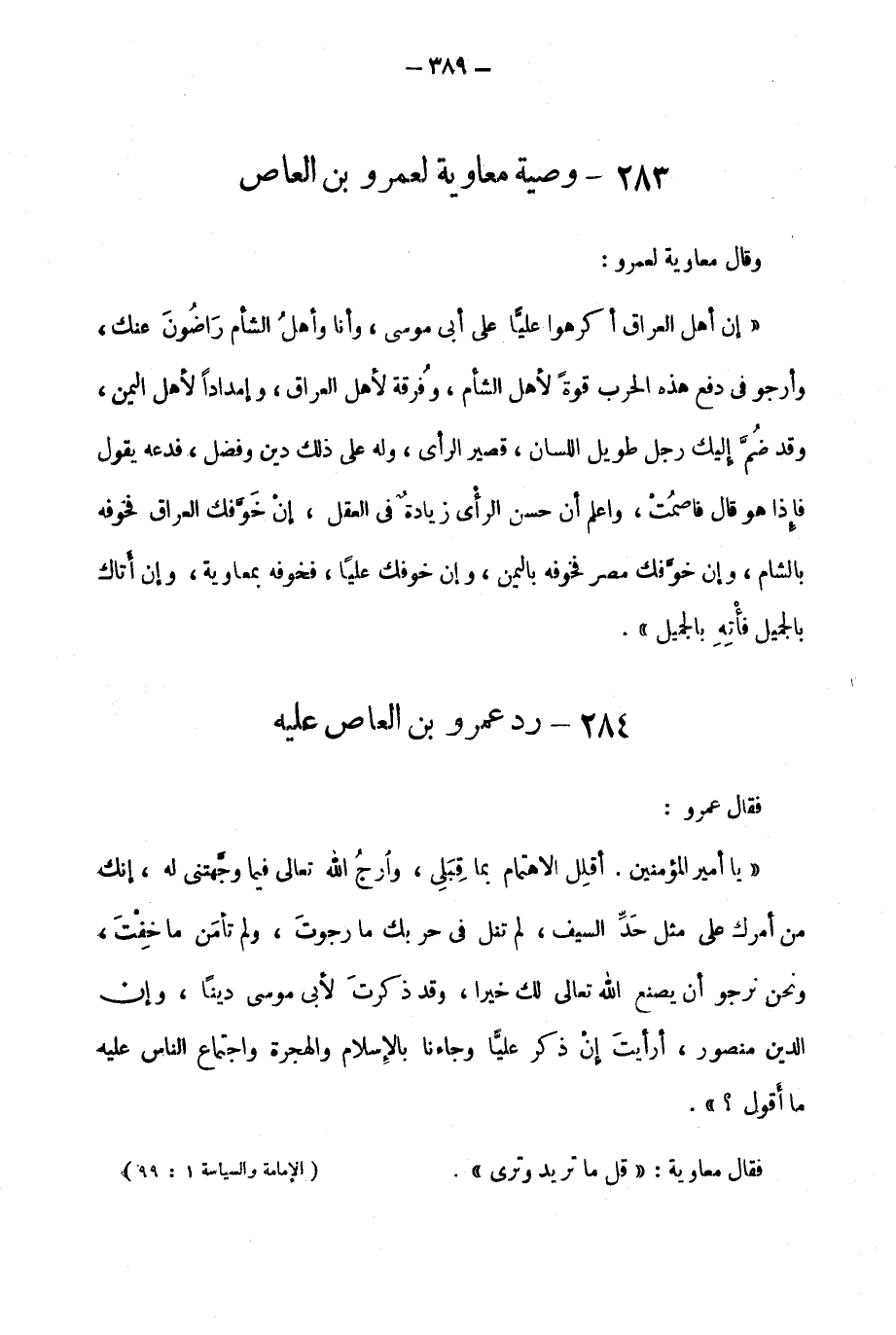 283- وصية معاوية لعمرو بن العاص: