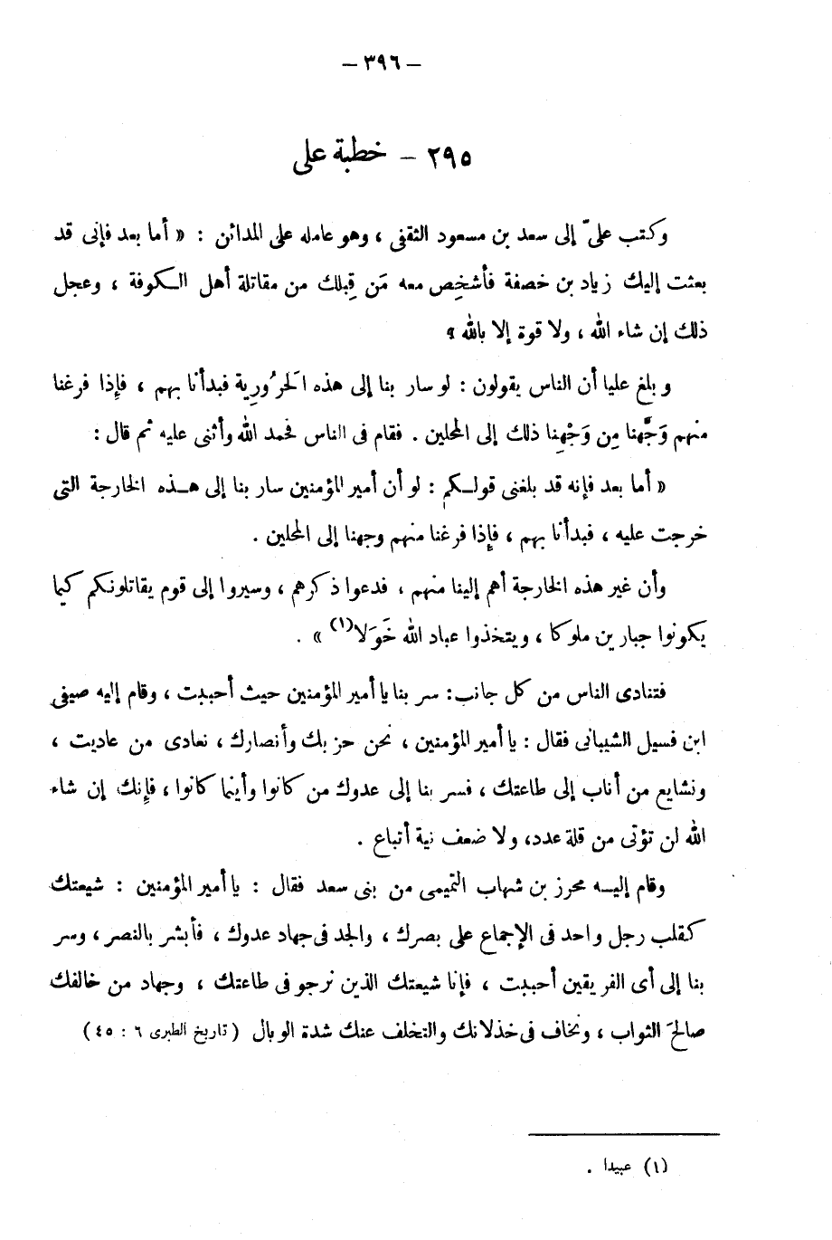 وأن غير هذه الخارجة أهم إلينا منهم، فدعوا ذكرهم، وسيروا إلى قوم يقاتلونكم كيما يكونوا جبارين ملوكًا، ويتخذوا عباد الله خولا1".
