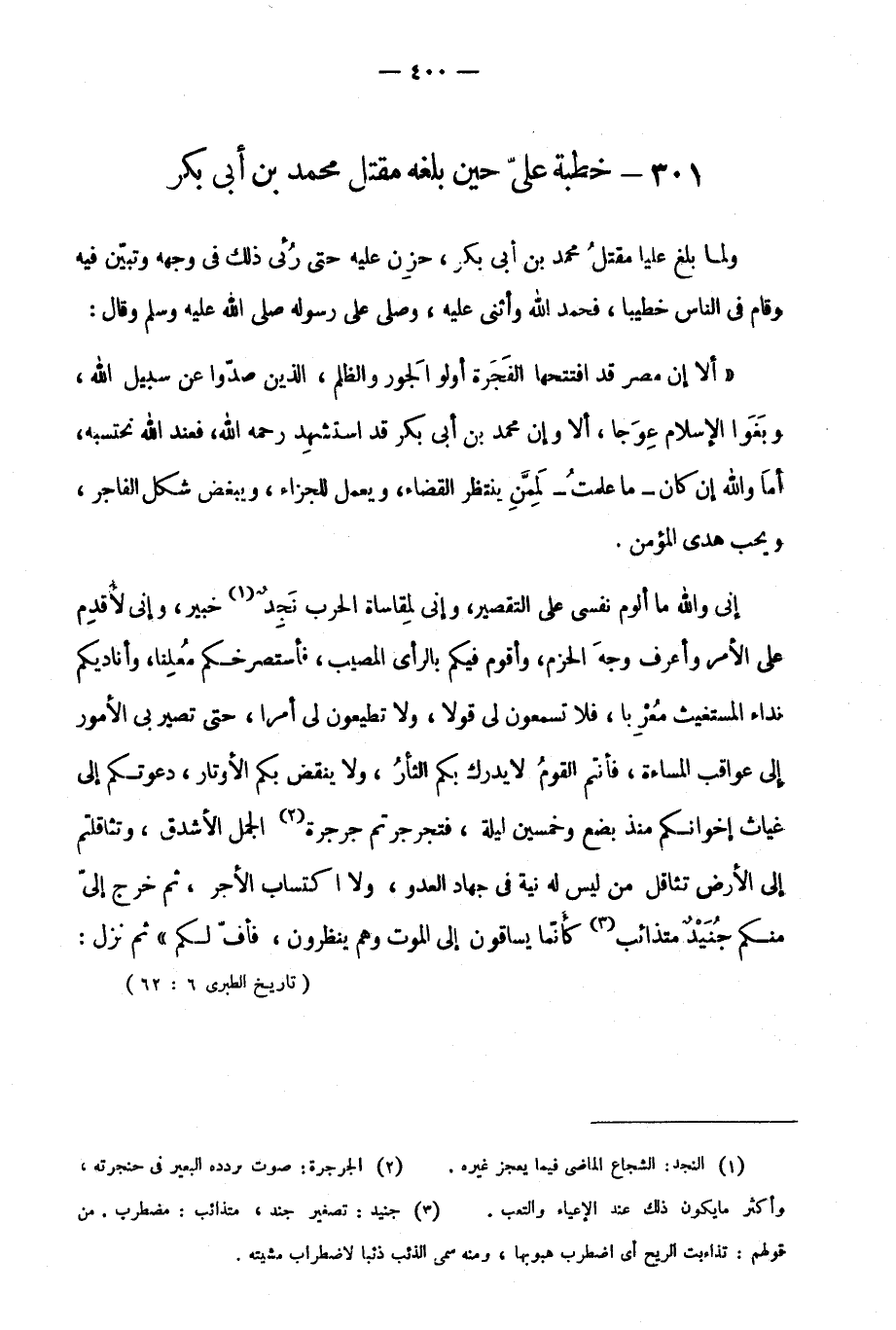 301- خطبة علي حين بلغه مقتل محمد بن أبي بكر: