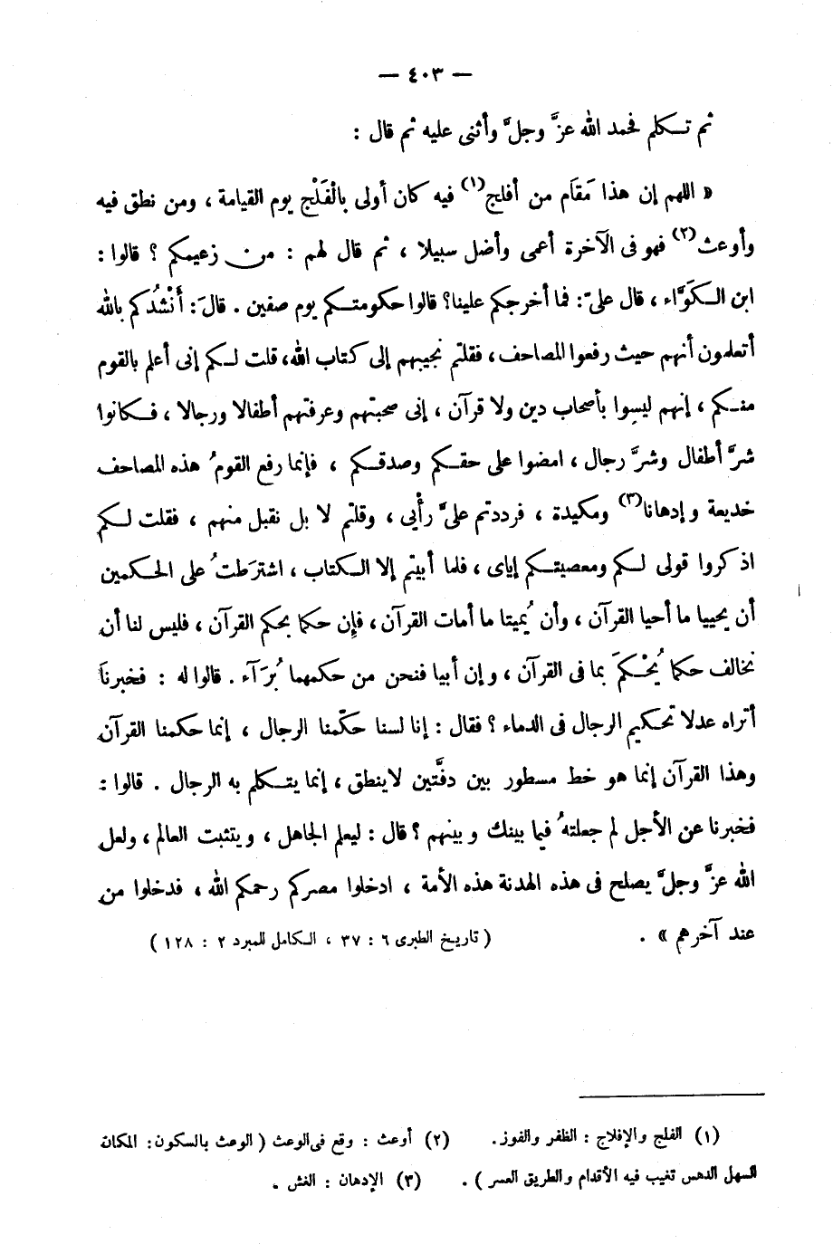 "تاريخ الطبري 6: 37، الكامل للمبرد 2: 128".