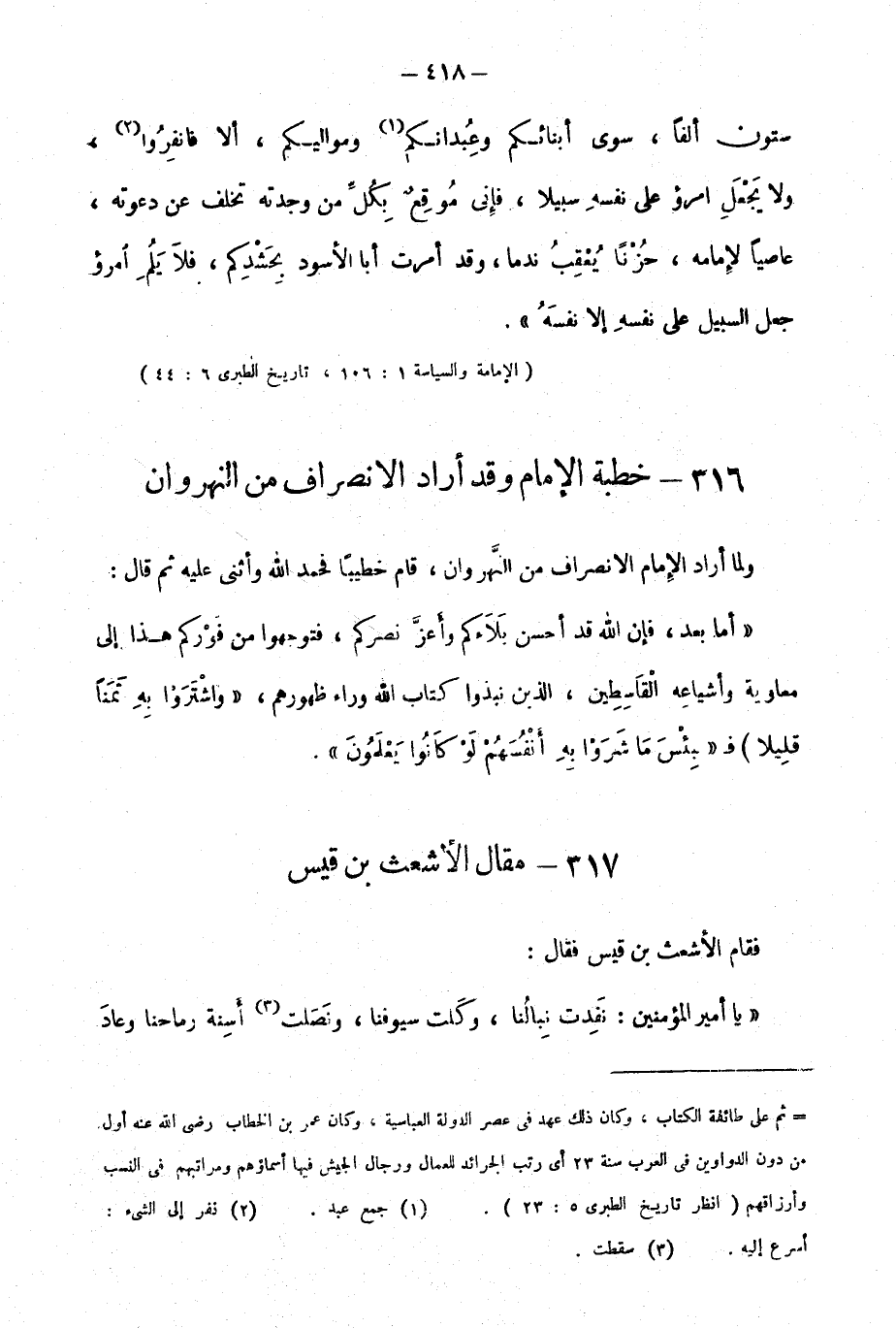 "الإمامة والسياسة 1: 106، تاريخ الطبري 6: 44".