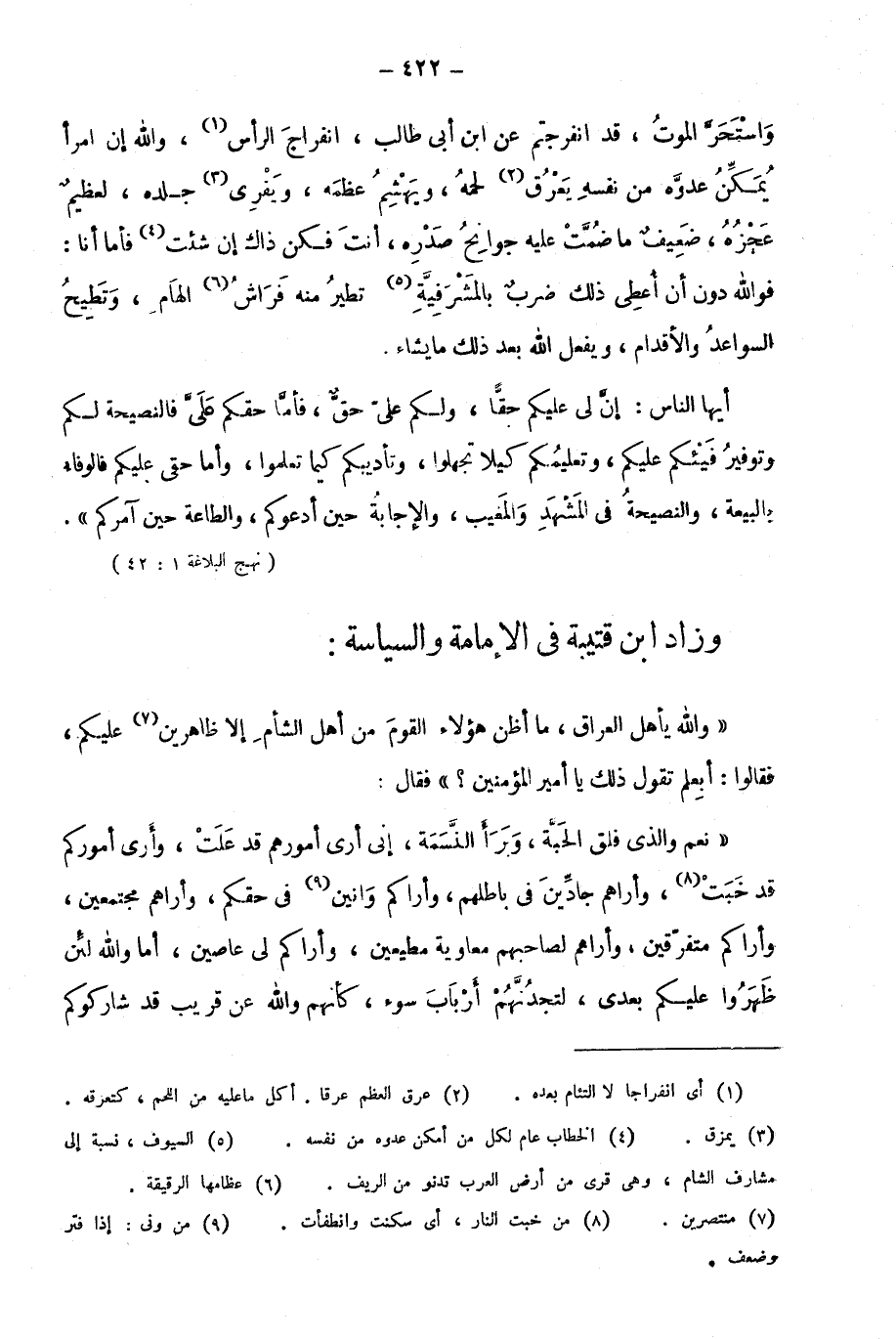 وزاد ابن قتيبة في الإمامة والسياسة: