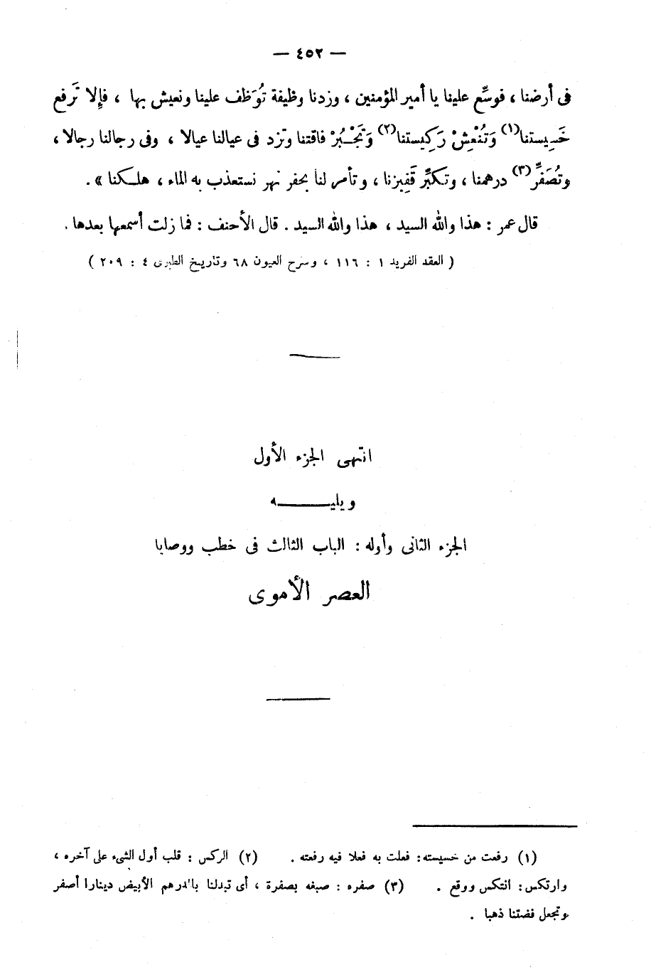 وأوله: الباب الثالث في خطب ووصيا العصر الأموي.