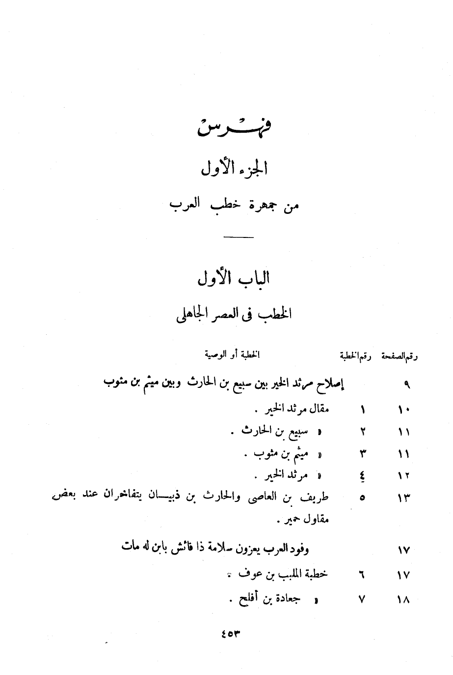فهرس الجزء الأول من جمهرة خطب العرب: