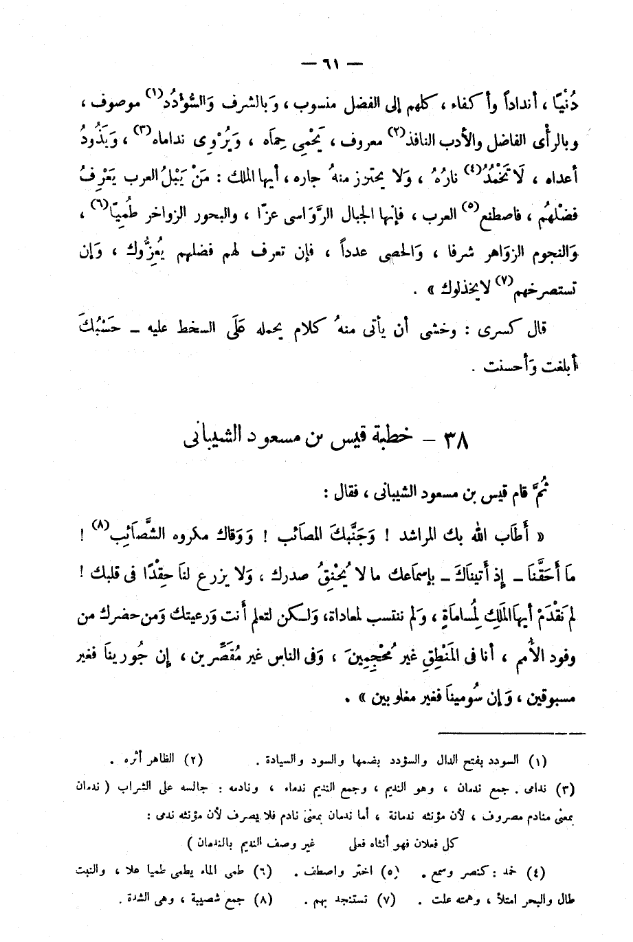 ثم قام قيس بن مسعود الشيباني؛ فقال: