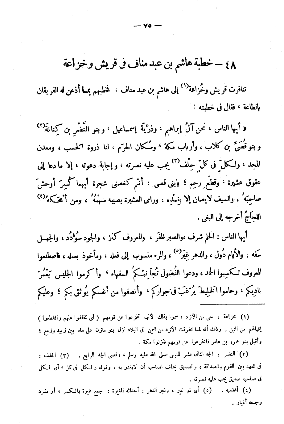 48- خطبة هاشم بن عبد مناف في قريش وخزاعة: