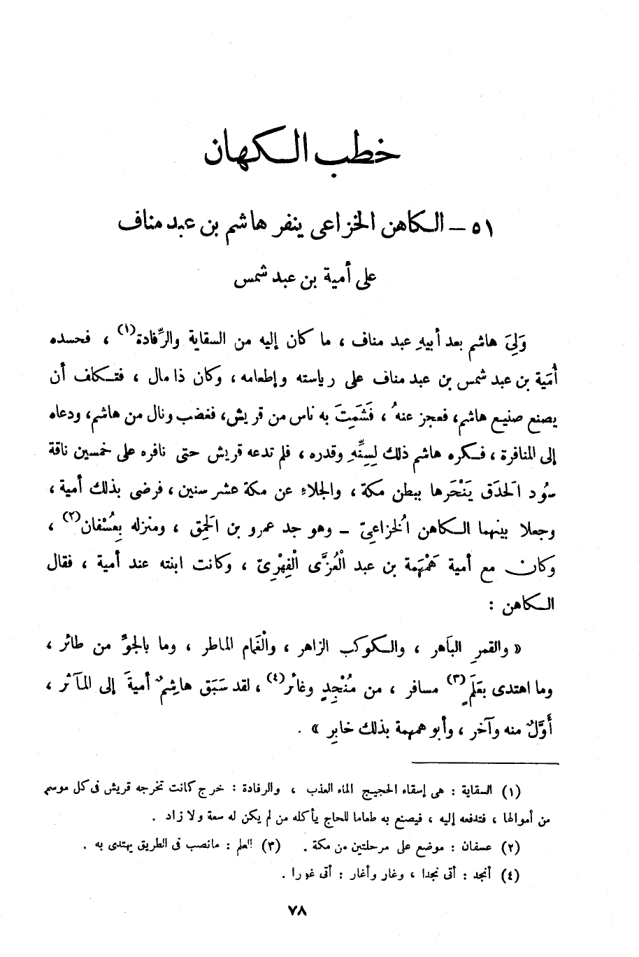 51- الكاهن الخزاعي ينفر هاشم بن عبد مناف على أمية بن عبد شمس: