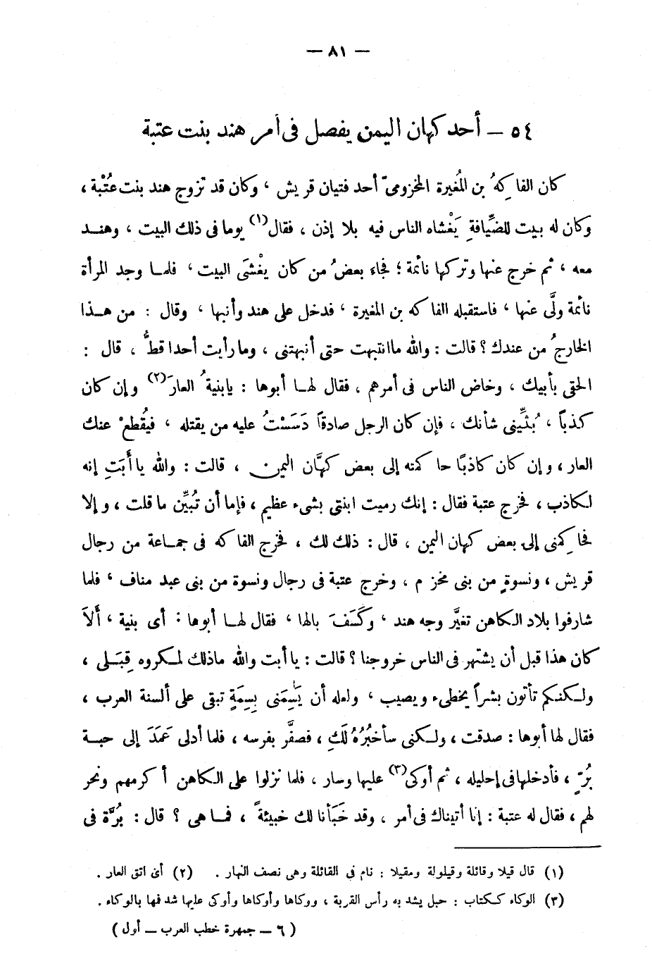 54- أحد كهان اليمن يفصل في أمر هند بنت عتبة: