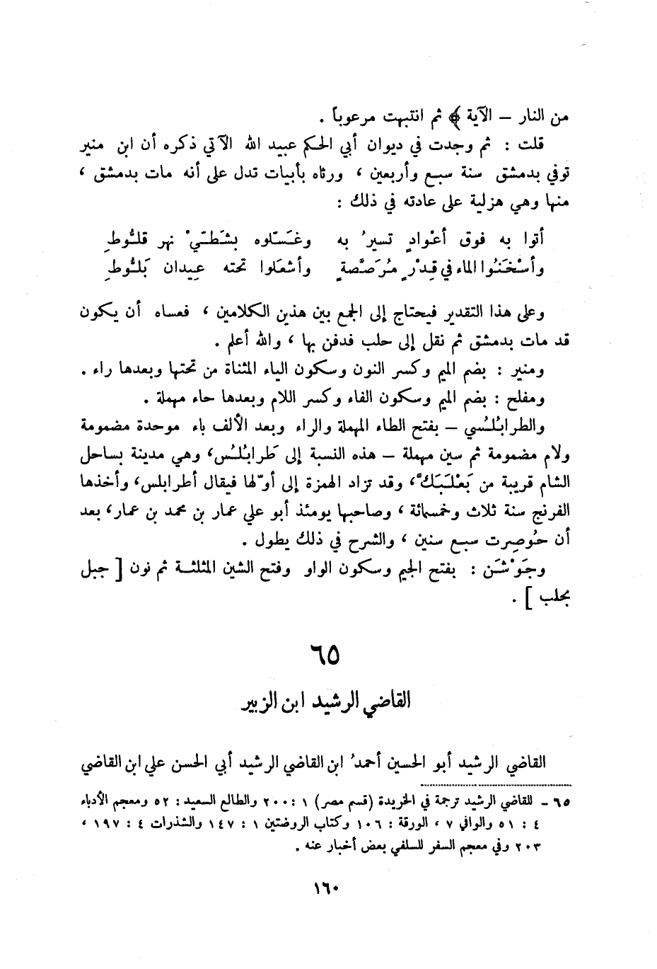 (1) للقاضي الرشيد ترجمة في الخريدة (قسم مصر) 1: 200 والطالع السعيد: 52 ومعجم الأدباء 4: 51 والوافي 7، الورقة: 106 وكتاب الروضتين 1: 147 والشذرات 4: 197، 203 وفي معجم السفر للسلفي بعض أخبار عنه.