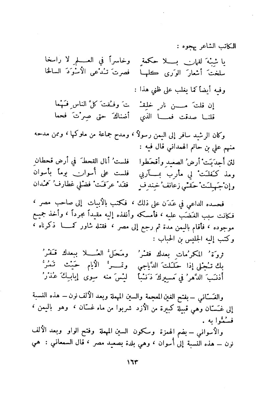 أذنب الدهر في مسيرك ذنباً ... ليس منه سوى إيابك عذر والغساني - بفتح الغين المعجمة والسين المهملة وبعد الألف نون - هذه النسبة إلى غسان وهي قبيلة كبيرة من الأزد شربوا من ماء غسان، وهو باليمن فسموا به.