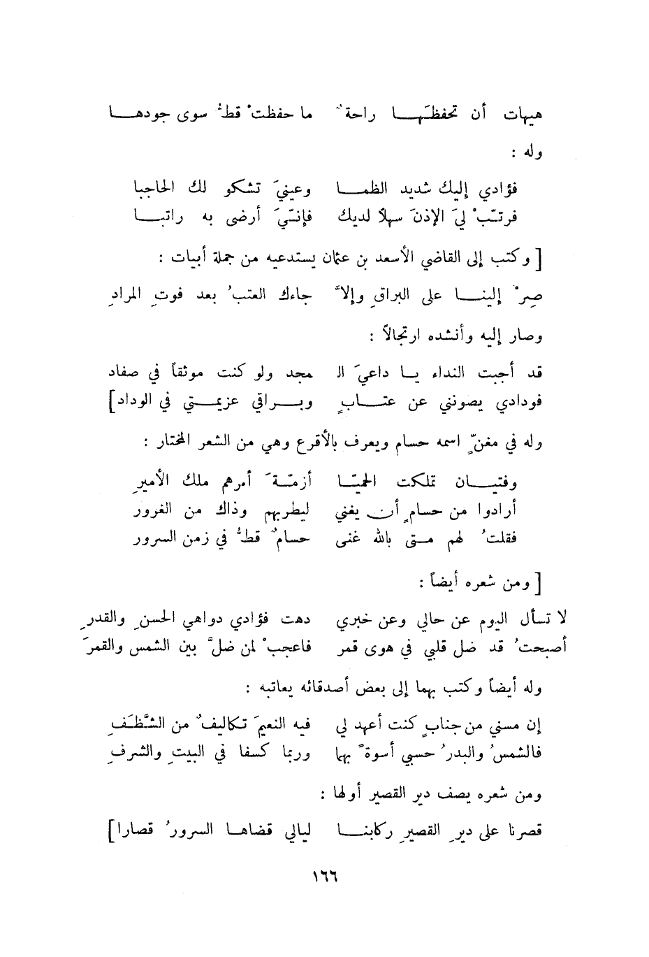 فودادي يصونني عن عتاب ... وبراقي عزيمتي في الوداد] وله في مغن اسمه حسام ويعرف بالأقرع وهي من الشعر المختار:
