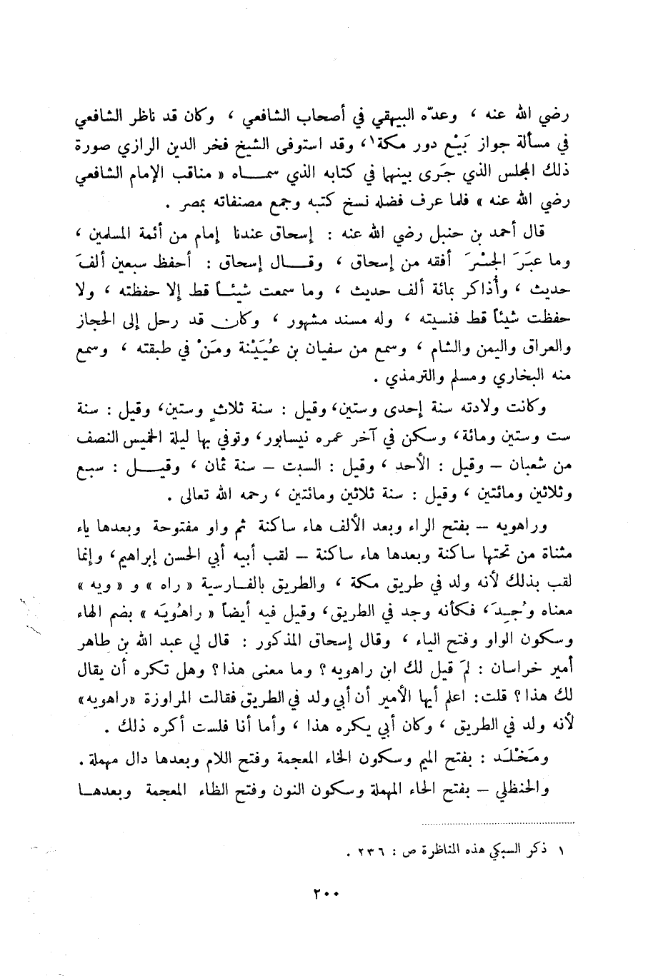 رضي الله عنه، وعدة البيهقي في أصحاب الشافعي، وكان قد ناظر الشافعي في مسألة جواز بيع دور مكة (1) ، وقد استوفى الشيخ فخر الدين الرازي صورة ذلك المجلس الذي جرى بينهما في كتابه الذي سماه مناقب الإمام الشافعي رضي الله عنه فلما عرف فضله نسخ كتبه وجمع مصنفاته بمصر.