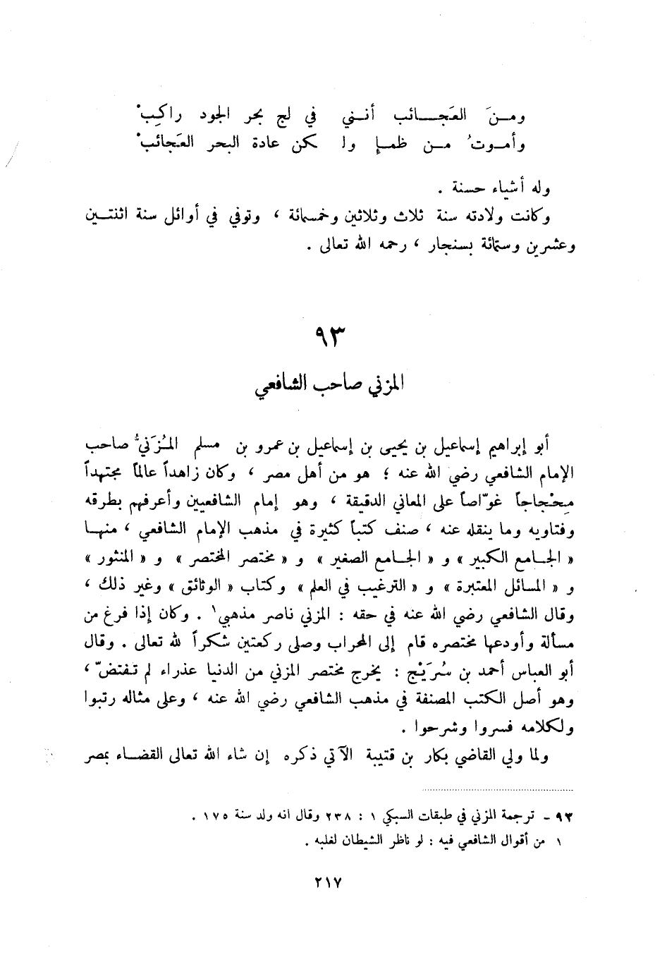 (1) ترجمة المزني في طبقات السبكي 1: 238 وقال أنه ولد سنة 175.