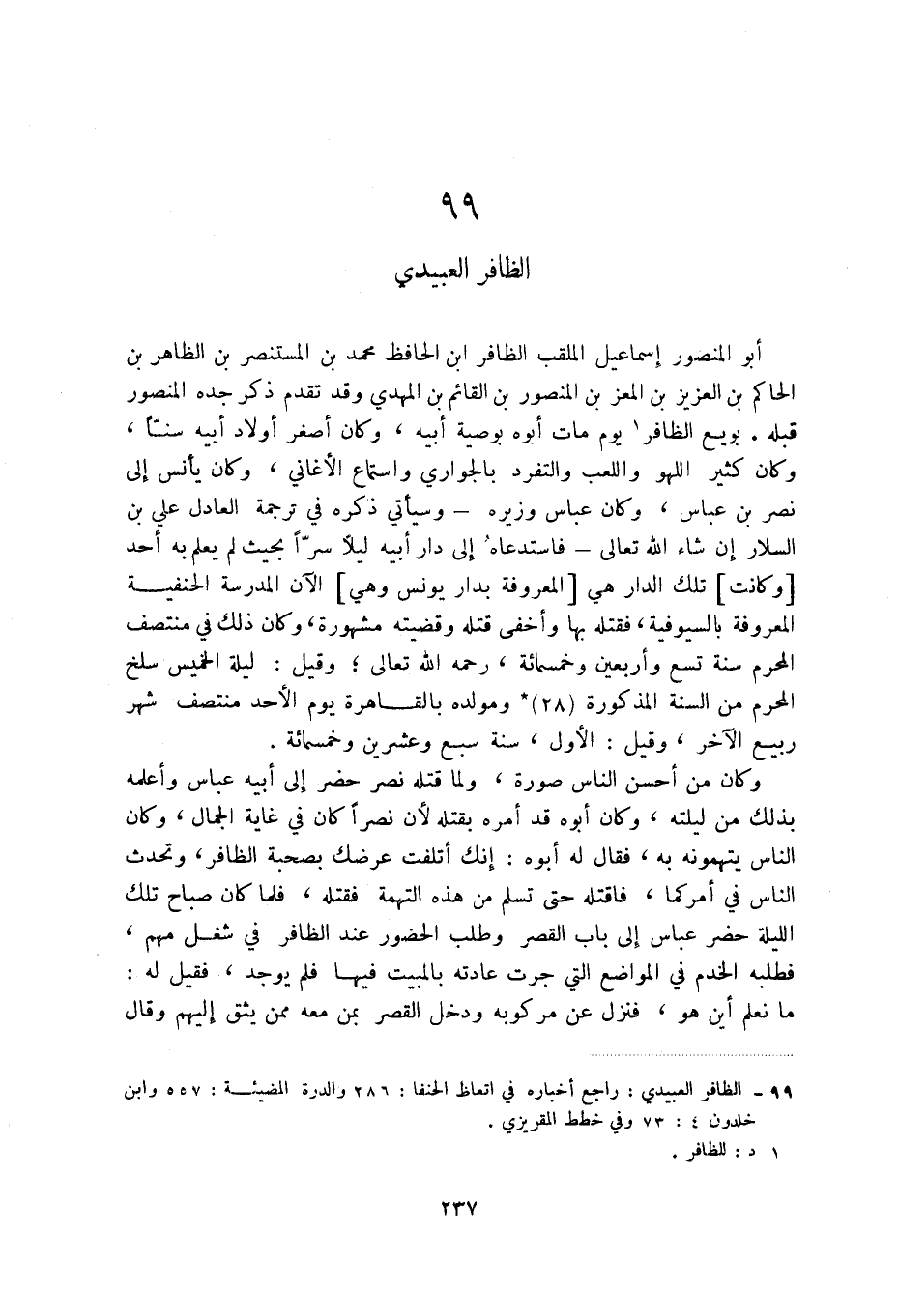 (1) الظافر العبيدي: راجع أخباره في اتعاظ الحنفا: 286 والدرة المضيئة: 557 وابن خلدون 4: 73 وفي خطط المقريزي.