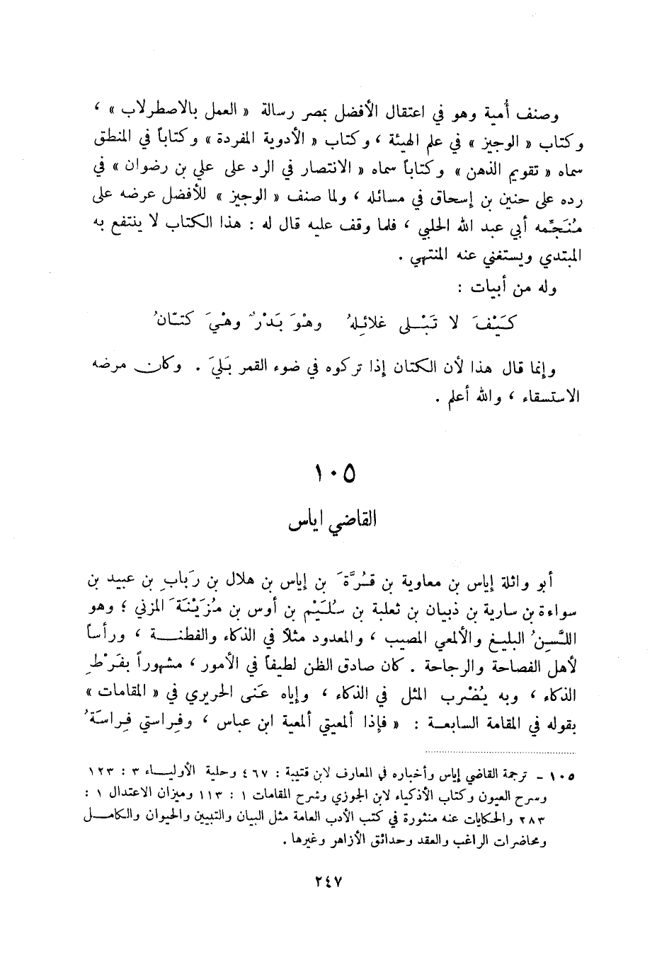 (1) ترجمة القاضي إياس وأخباره في المعارف لابن قتيبة: 467 وحلية الأولياء 3: 123 وسرح العيون وكتاب الأذكياء لابن الجوزي وشرح المقامات 1: 113 وميزان الاعتدال 1: 283 والحكايات عنه منثورة في كتب الأدب اعامة مثل البيان والتبيين والحيوان والكامل ومحاضرات الراغب والعقد وحدائث الأزاهر وغيرهما.