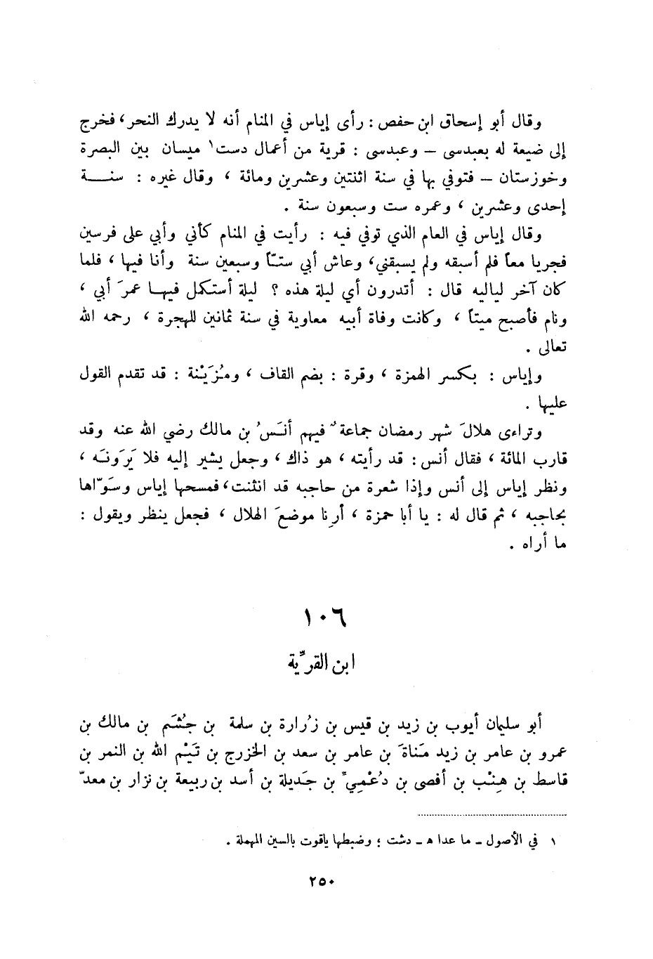وتراءى هلال شهر رمضان جماعة فيهم أنس بن مالك رضي الله عنه وقد قارب المائة، فقال أنس: قد رأيته، هو ذاك، وجعل يشير إليه فلا يرونه، ونظر إياس إلى أنس وإذا شعرة من حاجبه قد انثنت، فمسحها إياس وسواها بحاجبه، ثم قال له: يا أبا حمزة، أرنا موضع الهلال، فجعل ينظر ويقول ما أراه.
