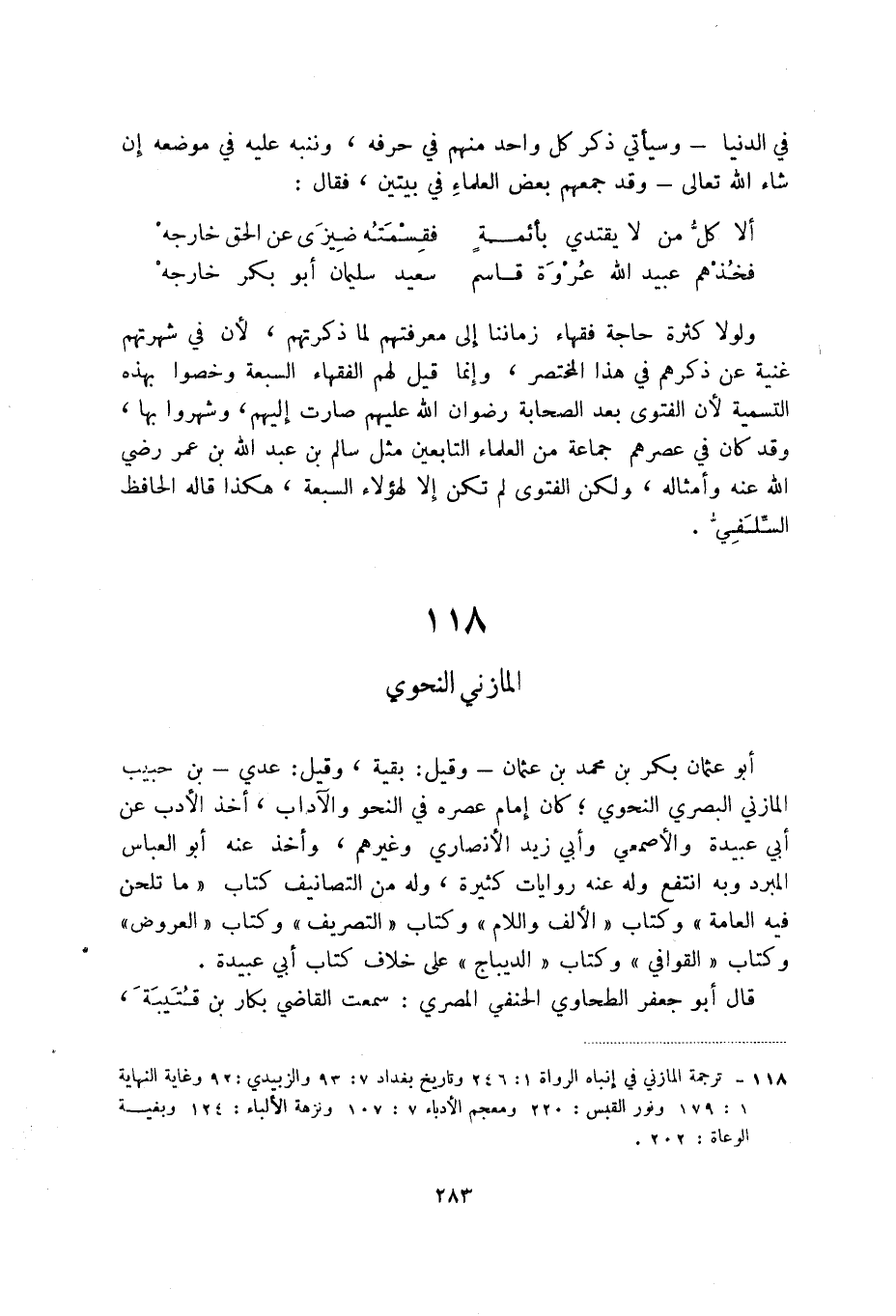 (1) ترجمة المازني في إنباه الرواة 1: 246 وتاريخ بغداد 7: 93 والزبيدي: 92 وغاية النهاية 1: 179 ونور القبس: 220 ومعجم الأدباء 7: 107 ونزهة الألباء: 124 وبغية الوعاة: 202.