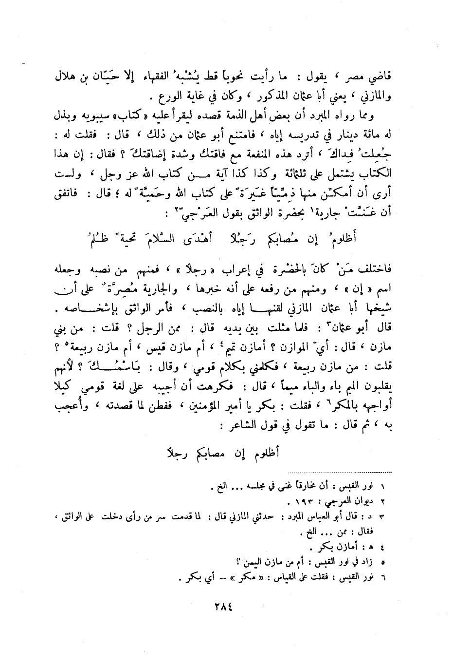 (3) د: قال أبو العباس المبرد: حدثني المازني قال: لما قدمت سر من رأى دخلت على الواثق، فقال: ممن ... الخ.