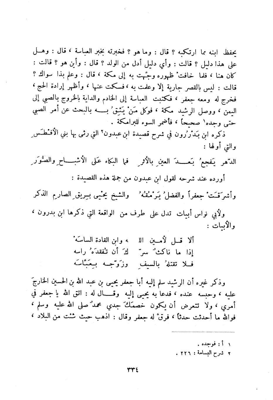 وأشرقت جعفراً والفضل يرمقه ... والشيخ يحيى يريق الصارم الذكر ولأبي نواس أبيات تدل على طرف من الواقعة التي ذكرها ابن بدرون، والأبيات: