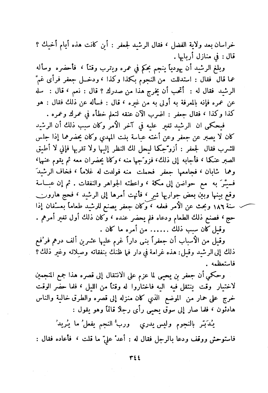 خراسان بعد ولاية الفضل، فقال الرشيد لجعفر: أين كانت هذه أيام أخيك قال: في منازل أربابها.