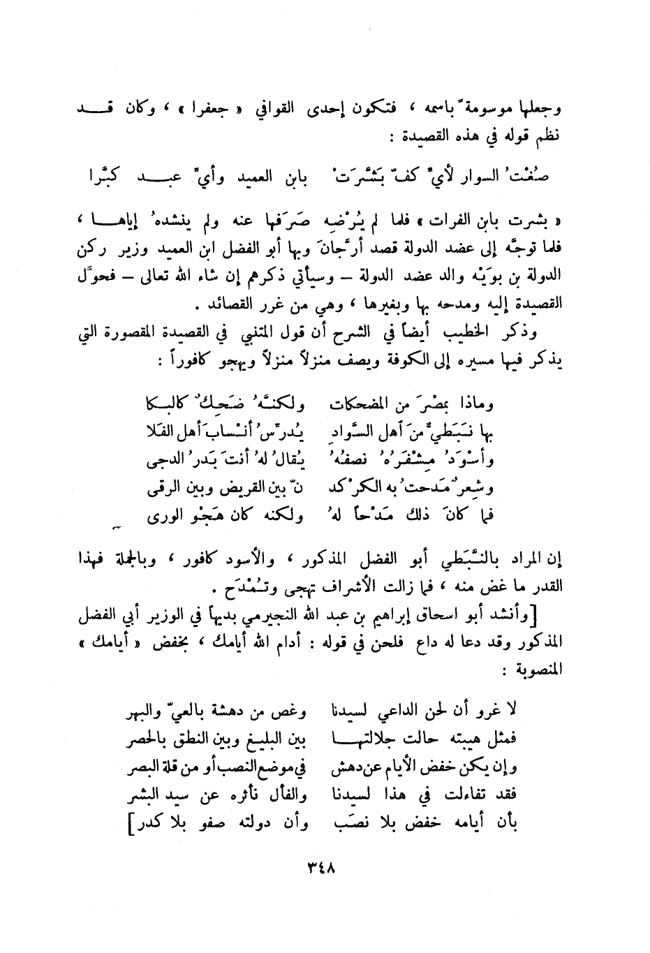 فما كان ذلك مدحا له ... ولكنه كان هجو الورى إن المراد بالنبطي أبو الفضل المذكور، والأسود كافور، وبالجملة فهذا القدر ما غض منه، فما زالت الأشراف تهجى وتمدح.