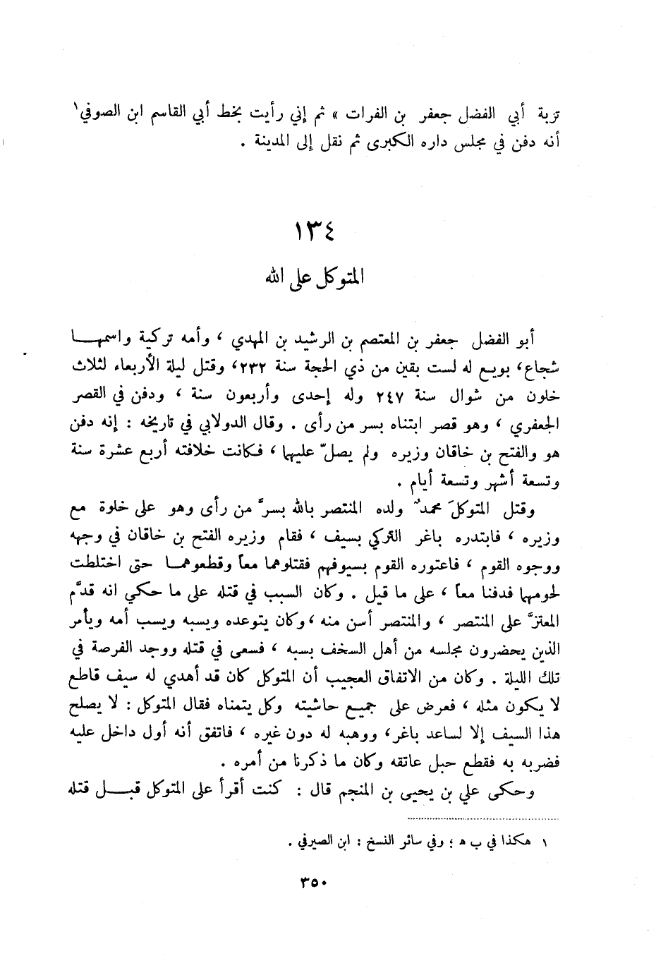 وحكى علي بن يحيى بن المنجم قال: كنت أقرأ على المتوكل قبل قتله