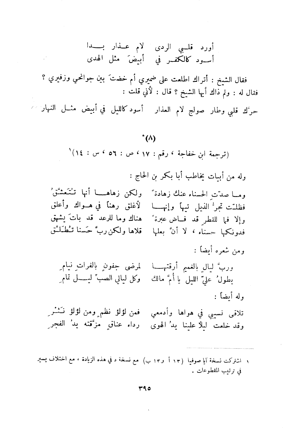 (1) اشتركت نسخة آيا صوفيا (13 أو 13 ب) مع نسخة د في هذه الزيادة، مع اختلاف يسير في ترتيب المقطوعات.