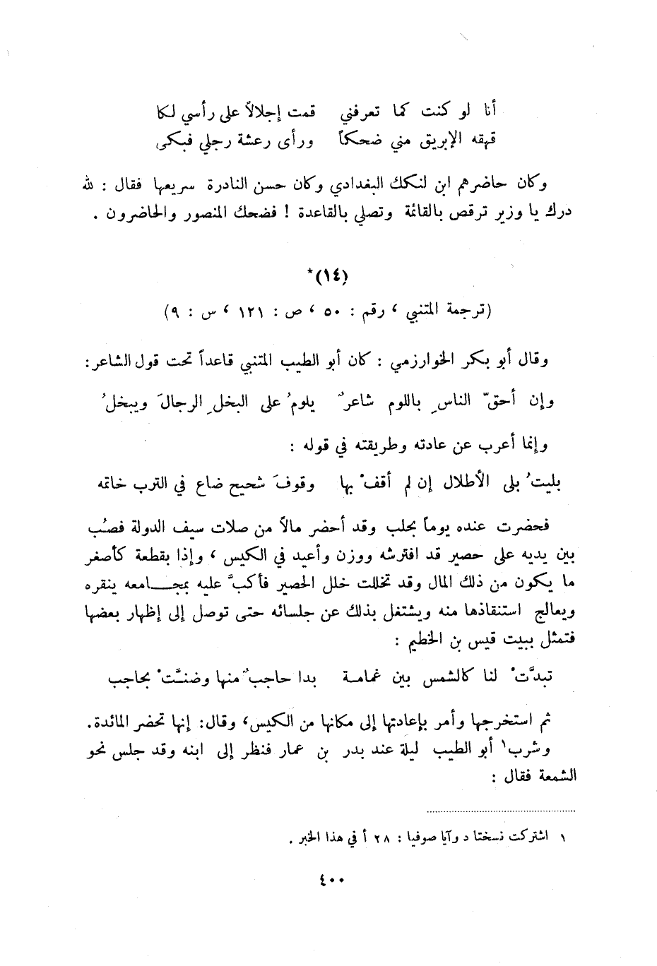 (ترجمة المتنبي، رقم: 50، ص: 121، س: 9)
