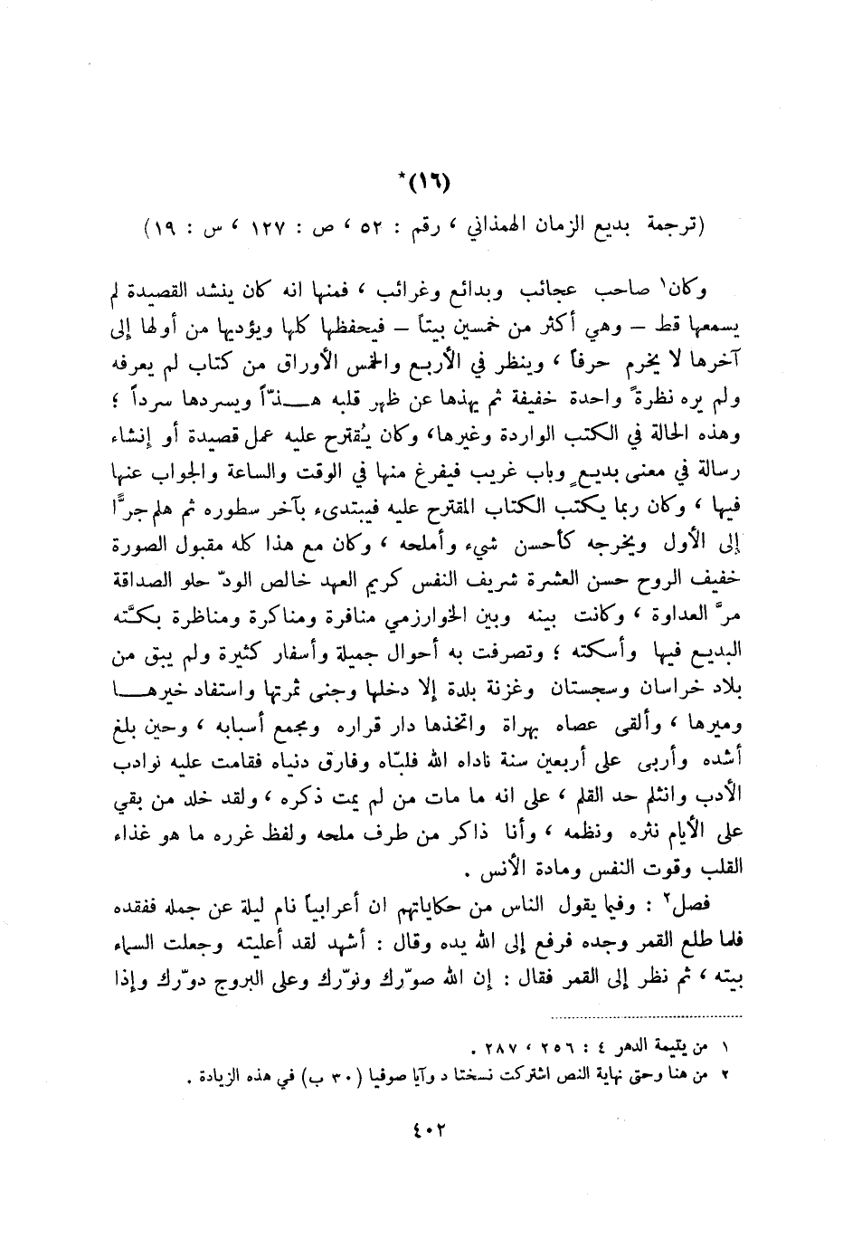 (ترجمة بديع الزمان الهمذاني، رقم: 52، ص: 127، س: 19)
