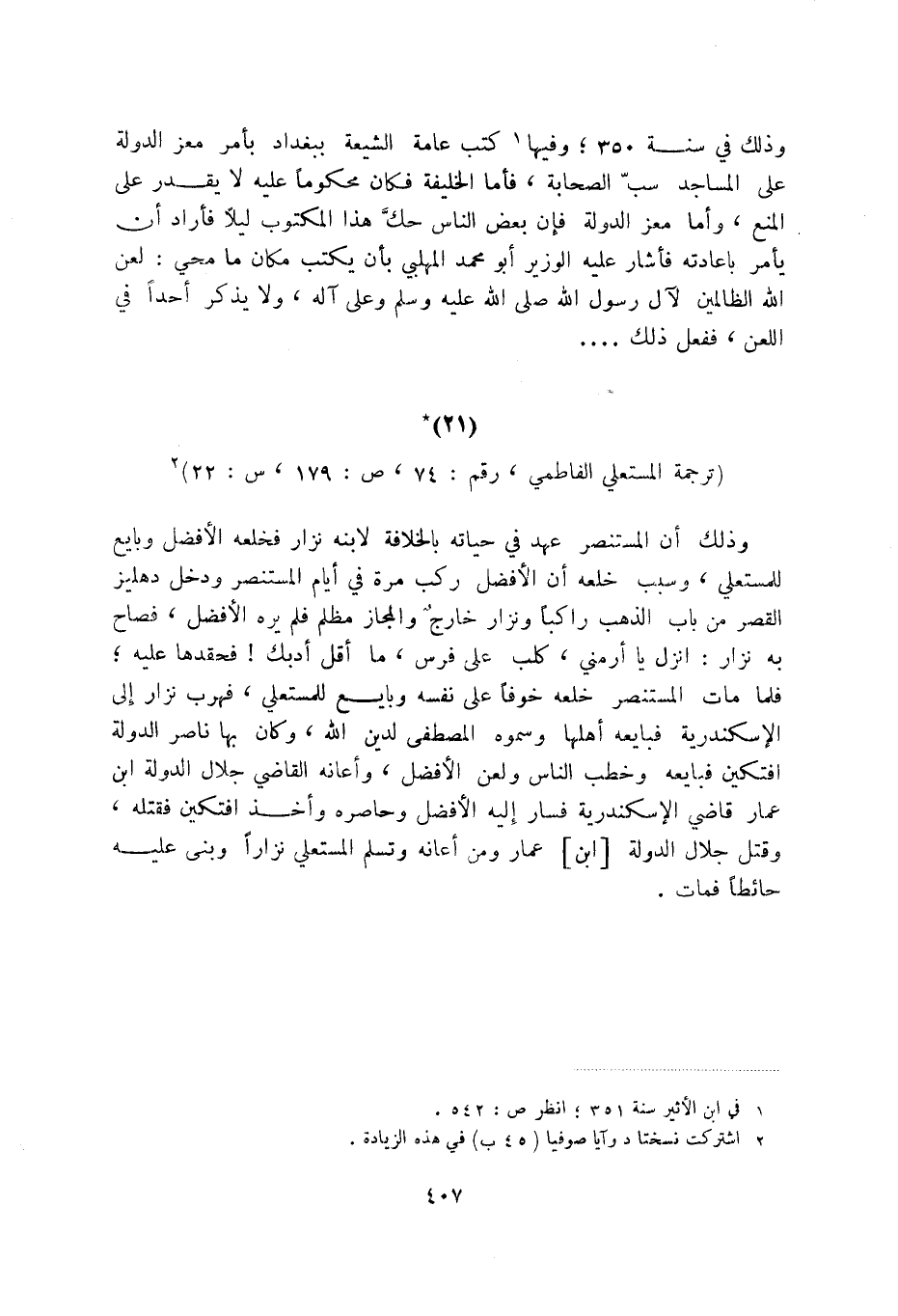 (ترجمة المستعلي الفاطمي، رقم: 74، ص: 179، س: 22) (2)