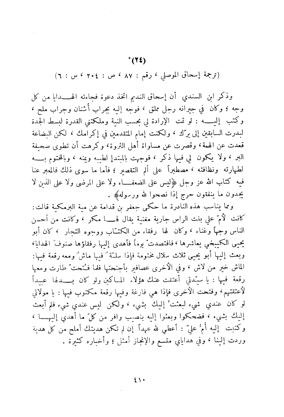 (ترجمة إسحاق الموصلي، رقم: 87، ص: 204، س: 6)
